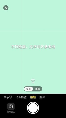 2.按照拍照指引完成拍摄就能搜题,也可以从相册导入图片,并且要选择下方对应的功能服务。