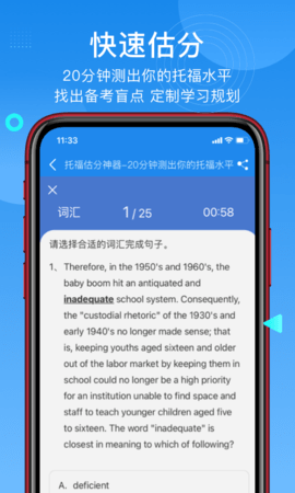 学为贵托福是一款专注于雅思/托福学习的应用类软件。依托16年的学术沉淀,它为用户提供专业的托福词汇学习服务,不仅有真人发音的单词听写练习,还创新运用“真经逻辑词群五维记忆法”,助力学生高效掌握托福词汇。此外,软件提供分难度层级的托福听力精听文本,帮助学习者循序渐进提升听力水平;其“真经预测”功能涵盖托福口语、写作及阅读词汇题的预测内容,每月更新,便于学生考前针对性备考。同时,学为贵托福还开设托福、GRE、GMAT和SAT公开课,以及专项提升训练营,全方位助力学生提升各项应试能力。