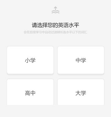1、打开干词,进入软件后,先选择自身对应的英语水平。