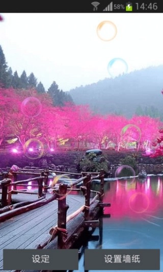 3、梦幻风景动态壁纸软件的“脱发效应”:点击按钮,切换背景,为你呈现大千世界。