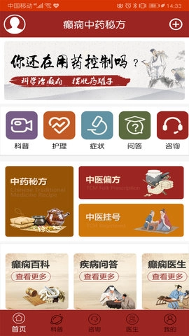癫痫中药秘方是一款医药咨询类手机软件,汇聚了上千种中华传统中医医术及民间流传的偏方秘方,为患者构建起快速、便捷的中医治疗癫痫与调理的健康问诊平台,致力于为癫痫患者提供全方位的中医治疗和调理服务。
