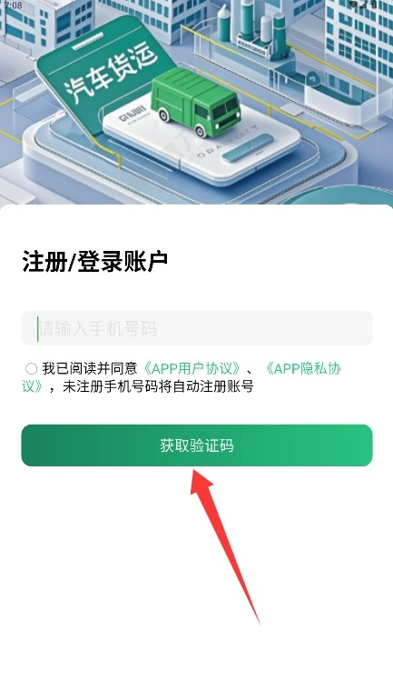 2、输入手机号码,勾选同意相关协议后点击获取验证码并输入完成注册登录。