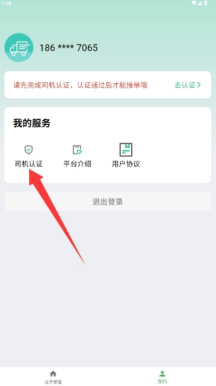 3、进入我的个人中心页面后,选择司机认证功能开始进行身份信息验证操作。