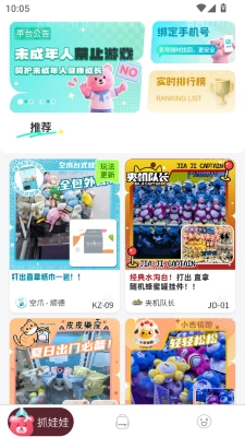 用户只需打开应用,挑选喜欢的娃娃机,就能轻松开启游戏。软件配备高清直播功能,可实时查看抓取过程,保障每位玩家都能拥有真实的游戏体验。同时提供3D视角切换技术,让玩家宛如身临真实娃娃机前,提升了游戏的沉浸感。奖品种类丰富多元,包含毛绒玩具、手办以及生活用品等,满足了不同用户的多样化需求。