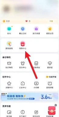 2.进入个人中心页面后,找到【任务中心】选项并点击,即可进入对应的页面。