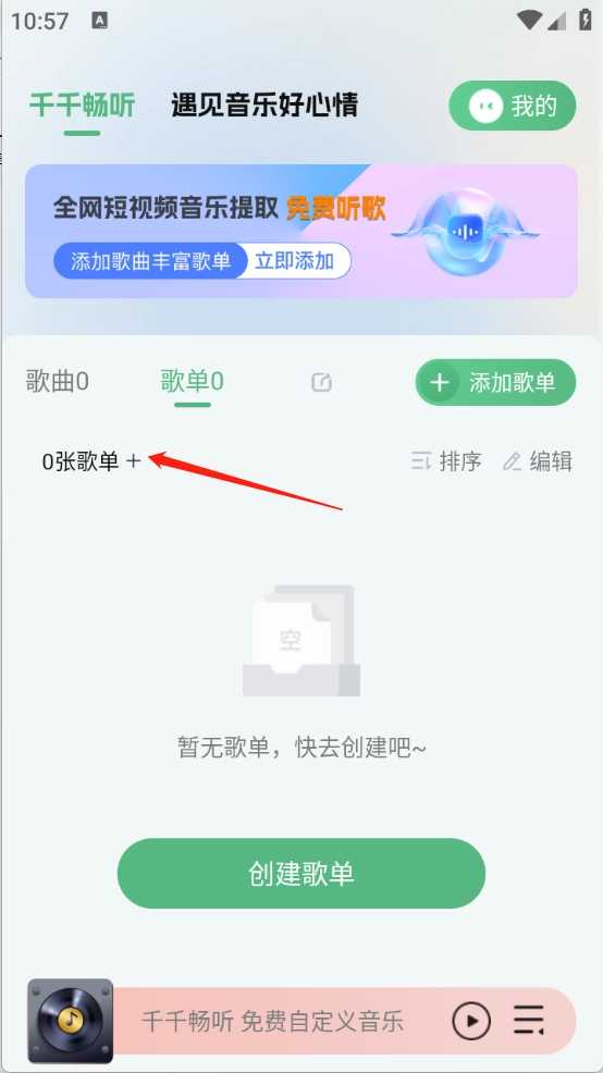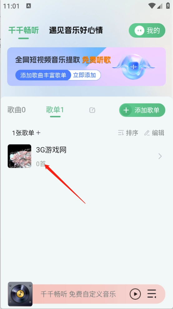3、回到首页就可以看到歌单了。