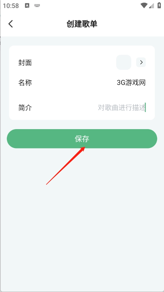 2、输入歌名以及简介、封面等信息点击“保存”。