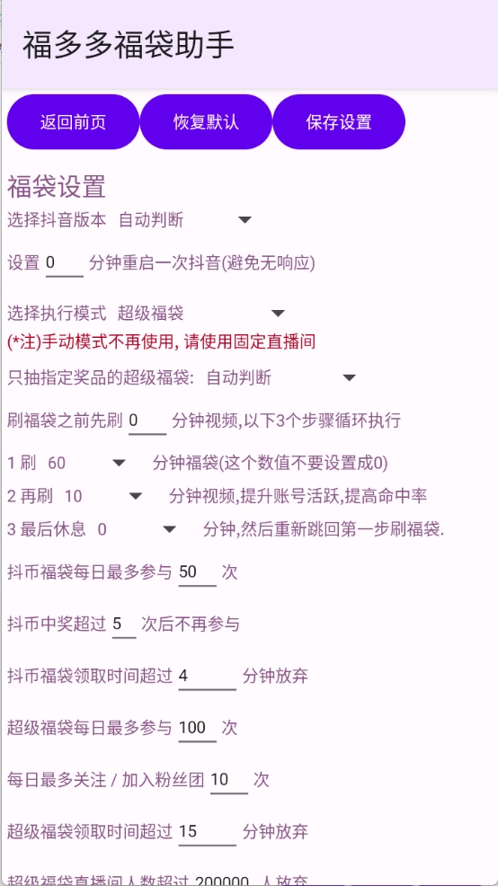 玩抖音的朋友都清楚,不少直播间会通过发福袋来提升人气,这就需要大家一直待在直播间里等着。不过现在有了福多多福袋助手,主播发福袋的时候它能自动去抢,还能自动发弹幕帮忙助力抽福袋,用户只要把相关参数设置好,就能让它自动操作抽取了,而且不用担心会被封号。