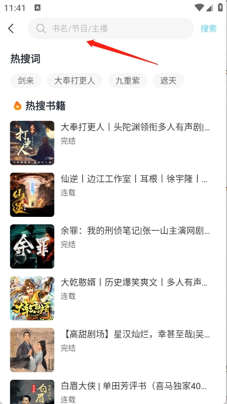 3、支持通过书名或者节目等进行搜索。