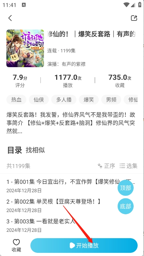 4、进入小说播放页面点击“开始播放”。