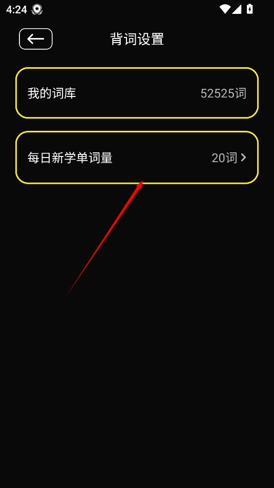 3、在新打开的页面中可以看到“每日新学单词量”,点击一下
