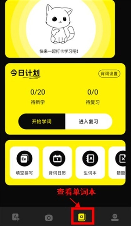4、而且还可以在首页下方点击“单词本”学习单词。