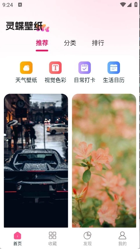 2、灵蝶壁纸包含天气壁纸、视觉色彩、每日时钟、日历等多种类型,能与生活深度融合。