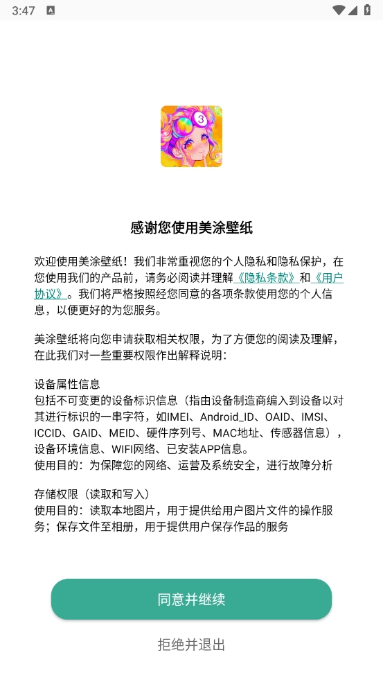 1、好美涂壁纸之后,查看并同意相关政策与协议。