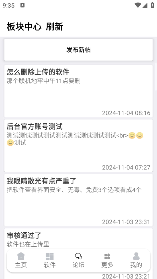 6、在“论坛”页面,你能看到其他用户发布的帖子,同时也可以自己发布新帖子。