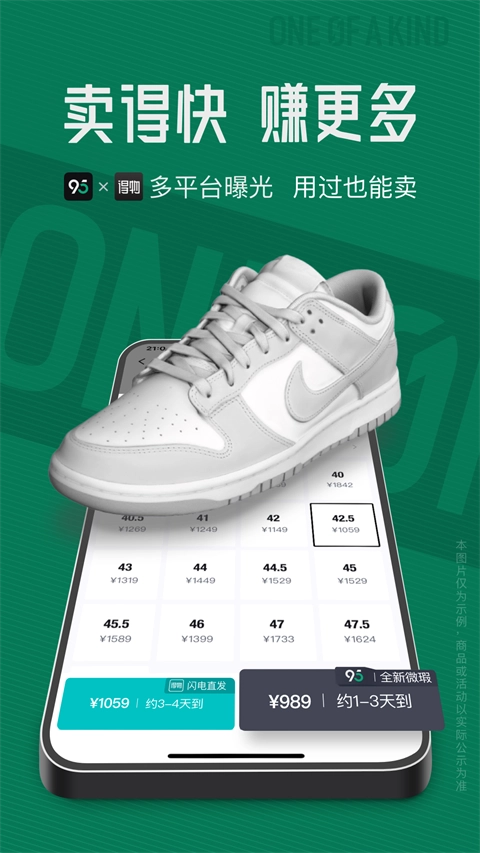 95分是一款深受年轻人青睐的潮流闲置交易平台,在这里,大家既能便捷地出手自己的闲置潮品,也能用划算的价格淘到心仪好物,像潮鞋、服饰、奢品包袋等都能找到。平台对每一件待交易的商品都会进行专业的质检与鉴定,只有确认是正品后才会正式上架。要是买到和图片严重不符的商品,还能申请退换货。另外,若想寄卖闲置潮流物品,通常30天内就能卖出,最快甚至当天就能成交!
