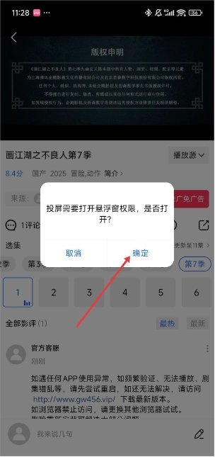 4. 若提示需开启悬浮窗权限,在弹窗里点击确定即可。