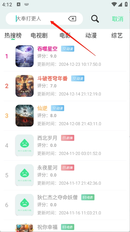 3、排行页面根据当前热度对影视进行了排序。