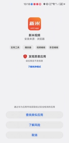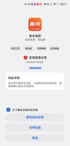 2、系统发现恶意应用,可能是误判,需要点击“了解风险”。