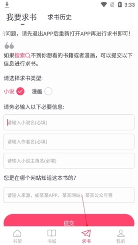 6.若是没有想要的漫画可以通过下方的求书功能获取自己要的资源。