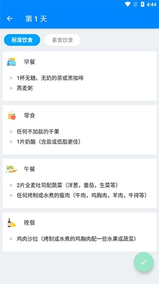 6、还为用户提供全天的饮食计划,标准饮食和素食饮食;