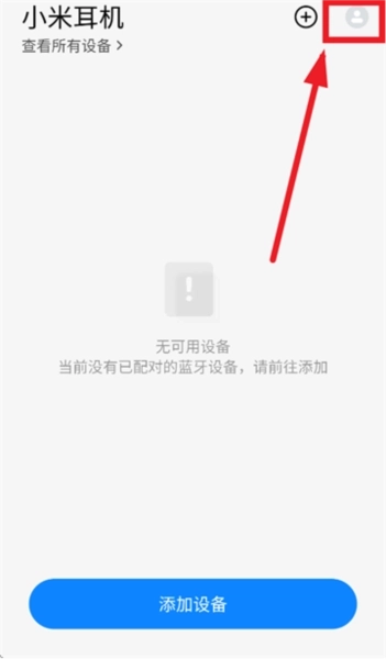 安装并打开小米耳机,点击右上角个人中心