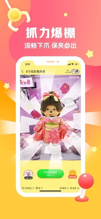 这是一个超人气的公仔潮玩零售社区,各位小公举们足不出户,就能随时随地体验线下抓娃娃的乐趣,双视角设计让你更容易抓到心仪的娃娃哦。只要留下你的邮寄地址,我们就会帮小公举们把可爱的娃娃直邮到家啦。