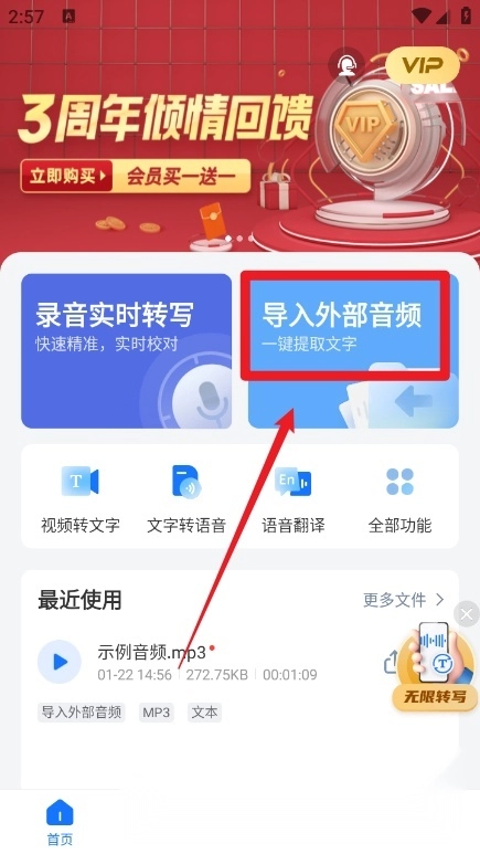 2. 文件识别:把手机里已存储的音频文件导入进来,然后将其转换为文本形式;