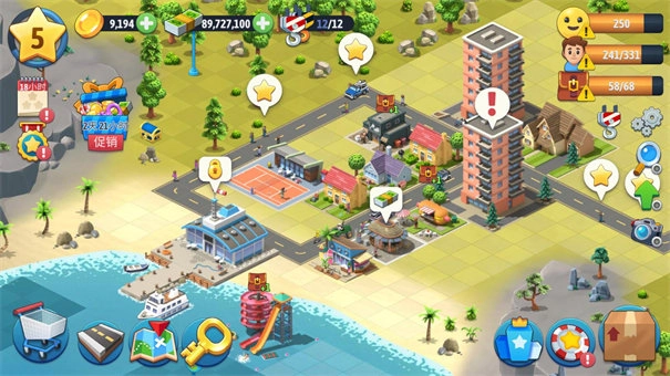 6、修建更多的建筑来提升等级解锁更多的房屋,不断扩展区域打造属于你的小镇。