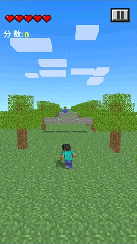 跑酷+战斗结合:玩家可以跳跃、滑行躲避障碍,也能下蹲攻击怪物,如僵尸、苦力怕、骷髅等。