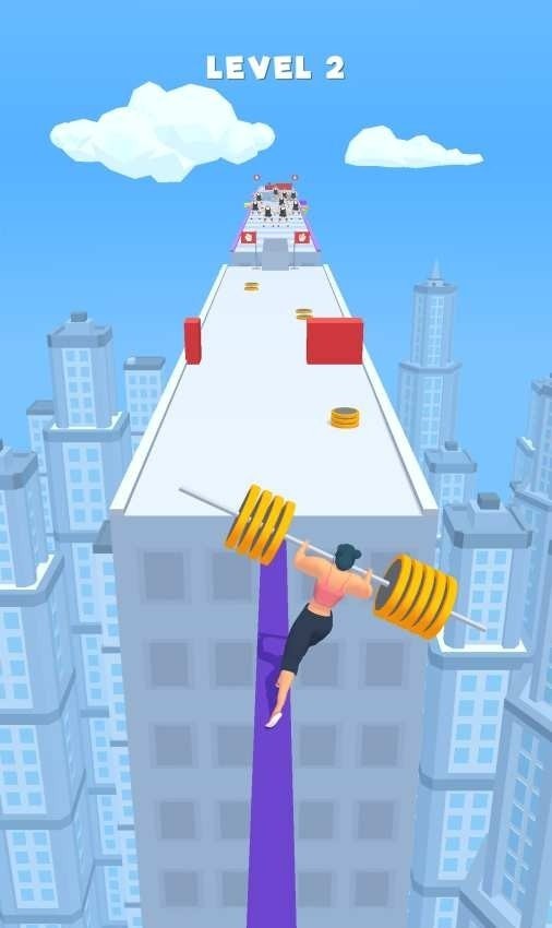 《举重跑酷》是一款在抖音上极其火爆的休闲跑酷类游戏。在游戏里,玩家要背着哑铃在场景中持续奔跑,同时不断收集场景中的垫片,以此增加哑铃的重量。哑铃越重,操作难度就会随之越来越高,挑战性十足,很适合那些热衷于挑战自我的玩家下载游玩。