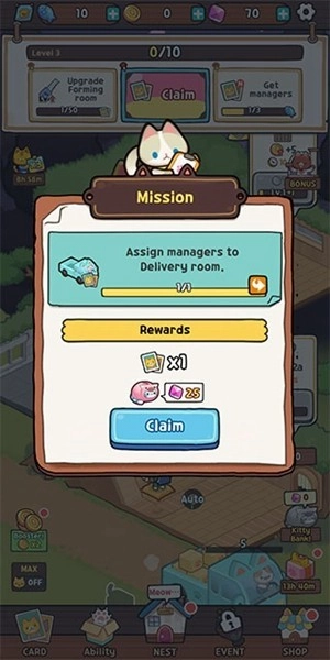 玩家需要在游戏里收集各式各样的猫咪,解锁对应的技能来辅助工厂管理,如此才能最大限度提升收益与发展效率。