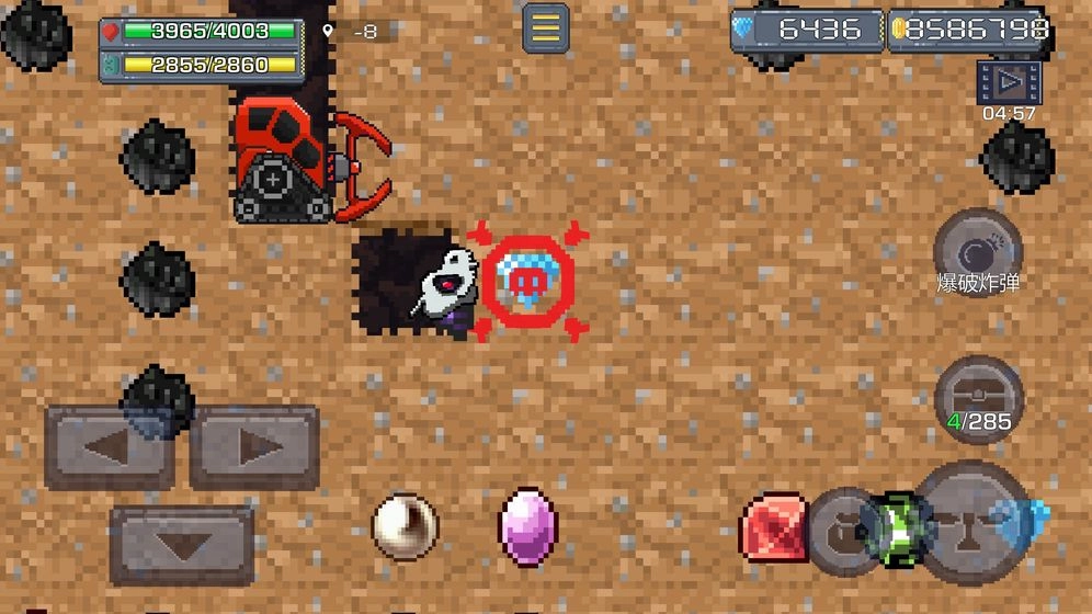 1、左、右、下键分别控制矿车的前后左右移动,其中下键还能帮助开采地表下方更多的宝藏资源。