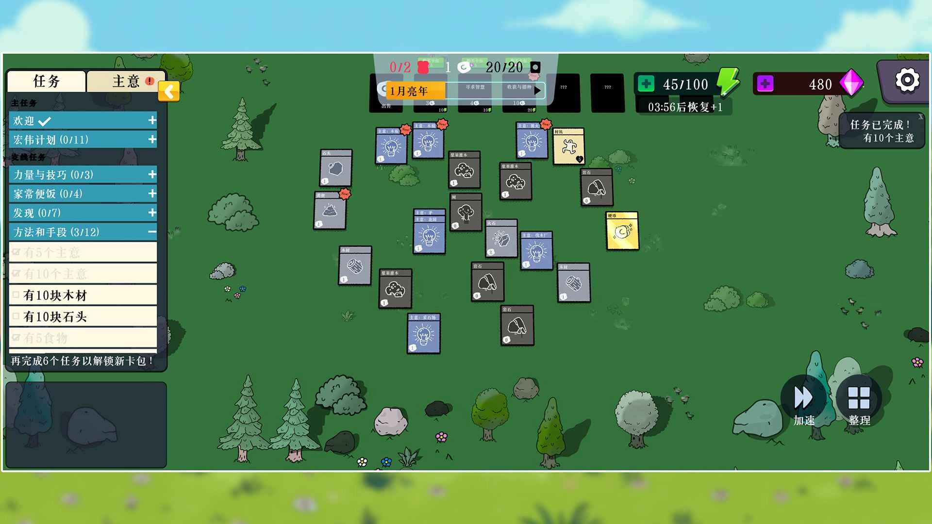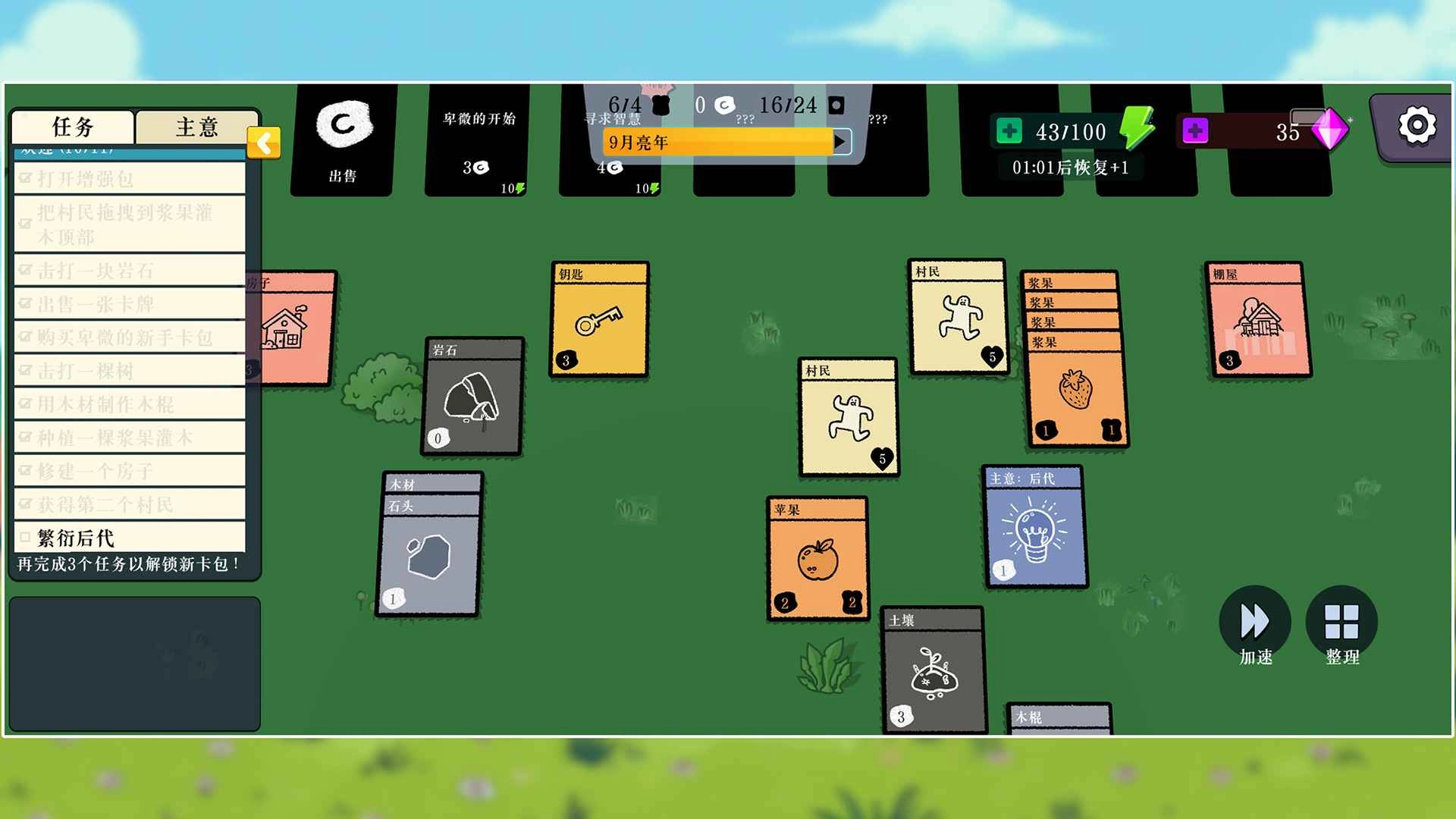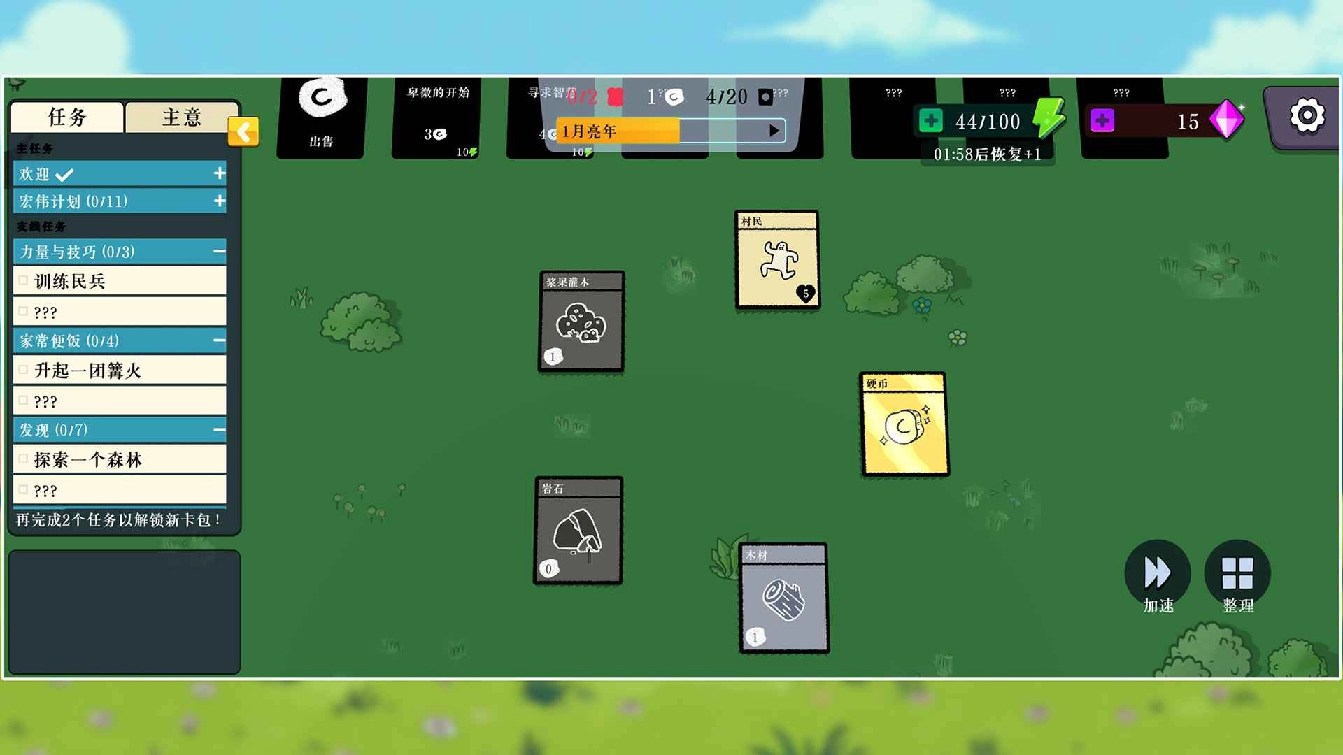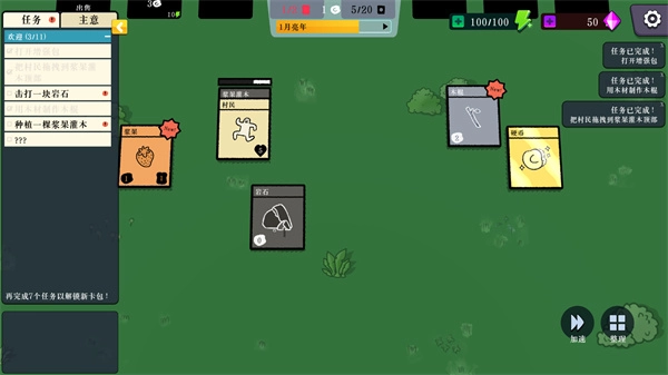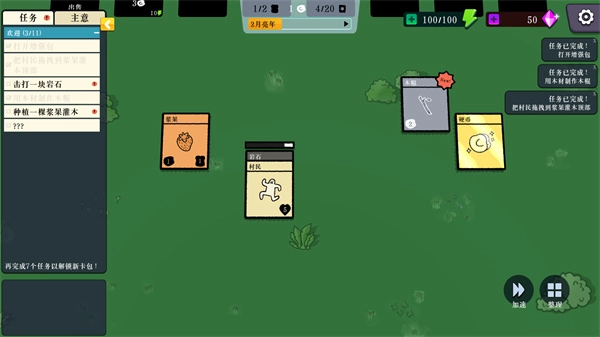 2、可以获得很多的卡牌,比如村民、木材、岩石等。