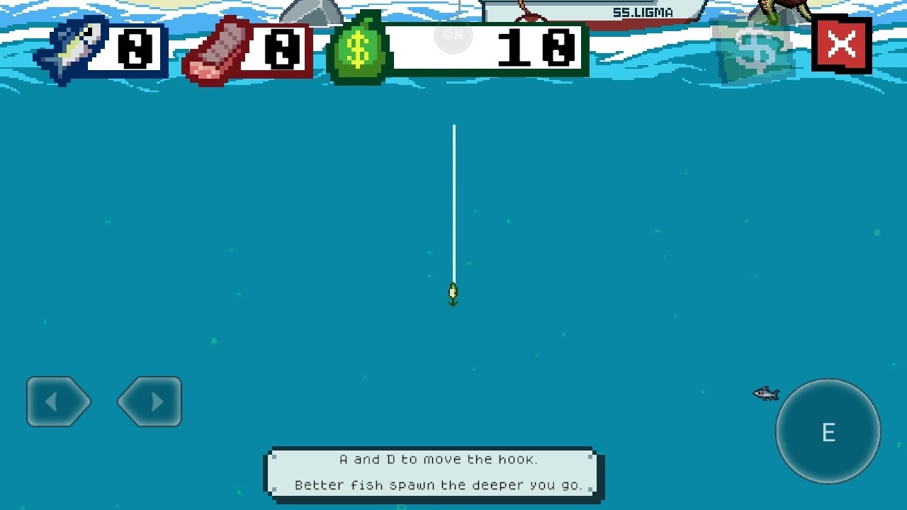 3、A和D用来移动鱼钩,越往深处,越能钓到更优质的鱼。