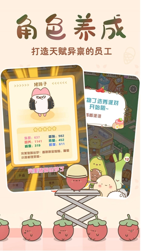 4、有很多可爱的食物角色,可以通过自由的互动来放松和快乐。