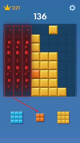 2、当某一行或某一列的方块全部填满时,系统会自动消除这些方块并给予玩家相应分数。