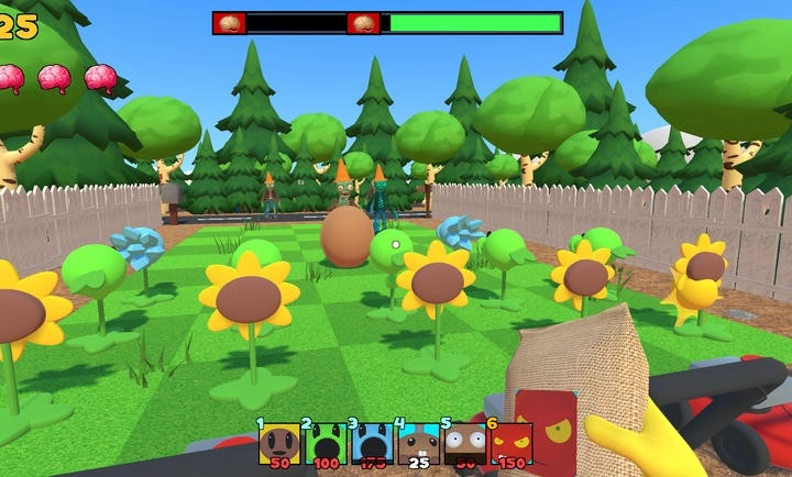 1、玩家要在3D地图里布置植物防线,抵挡一波波模样滑稽但极具威胁的僵尸进攻。