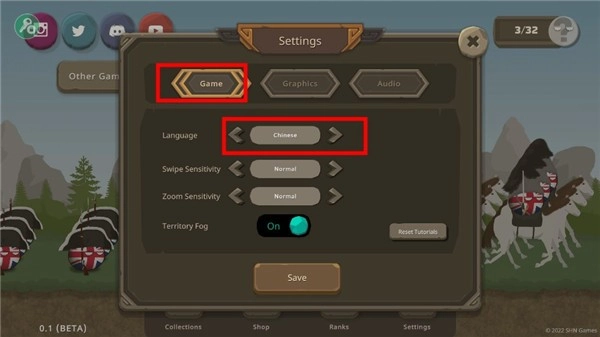 1、首先打开波兰球之战中文版游戏,点击下方设置按钮;