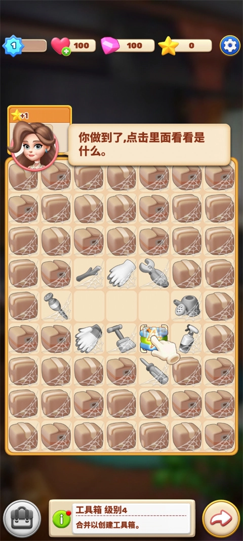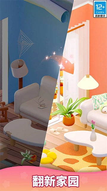 合并两个相同的对象后,您将获得解锁与升级每件家具及房间角落的工具,用于房屋或豪宅的翻新与粉刷。