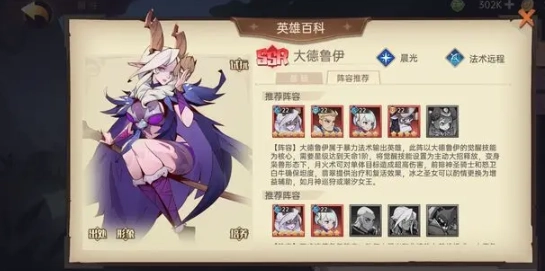 【阵容简述】这套阵容以大德鲁伊为核心培养对象,其主动大招采用觉醒变身效果,搭配大小月火技能的超高倍率伤害实现快速点杀目标。前排配置圣骑士与白牛,以此保障队伍的坦度;冰女负责提供控制与减速效果,潮汐女王则承担增伤和增速的辅助作用。此外,也可根据实际情况将潮汐女王替换为其他后排副C,或者额外增加一个治疗位置。该阵容的前排坦度较为出色,但存在惧怕敌方切后英雄的短板。