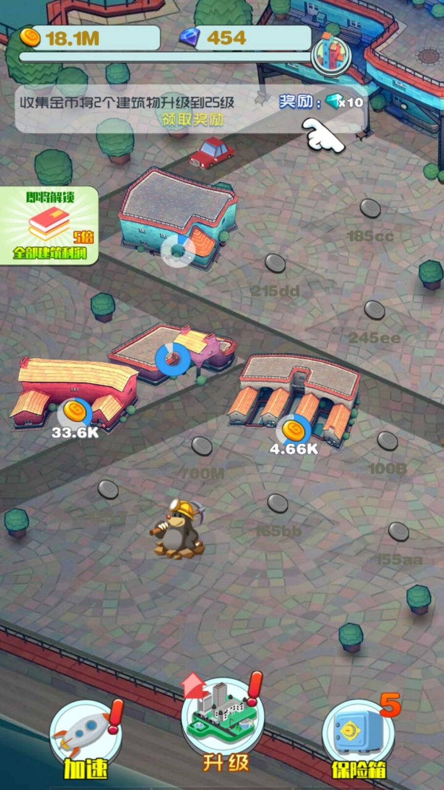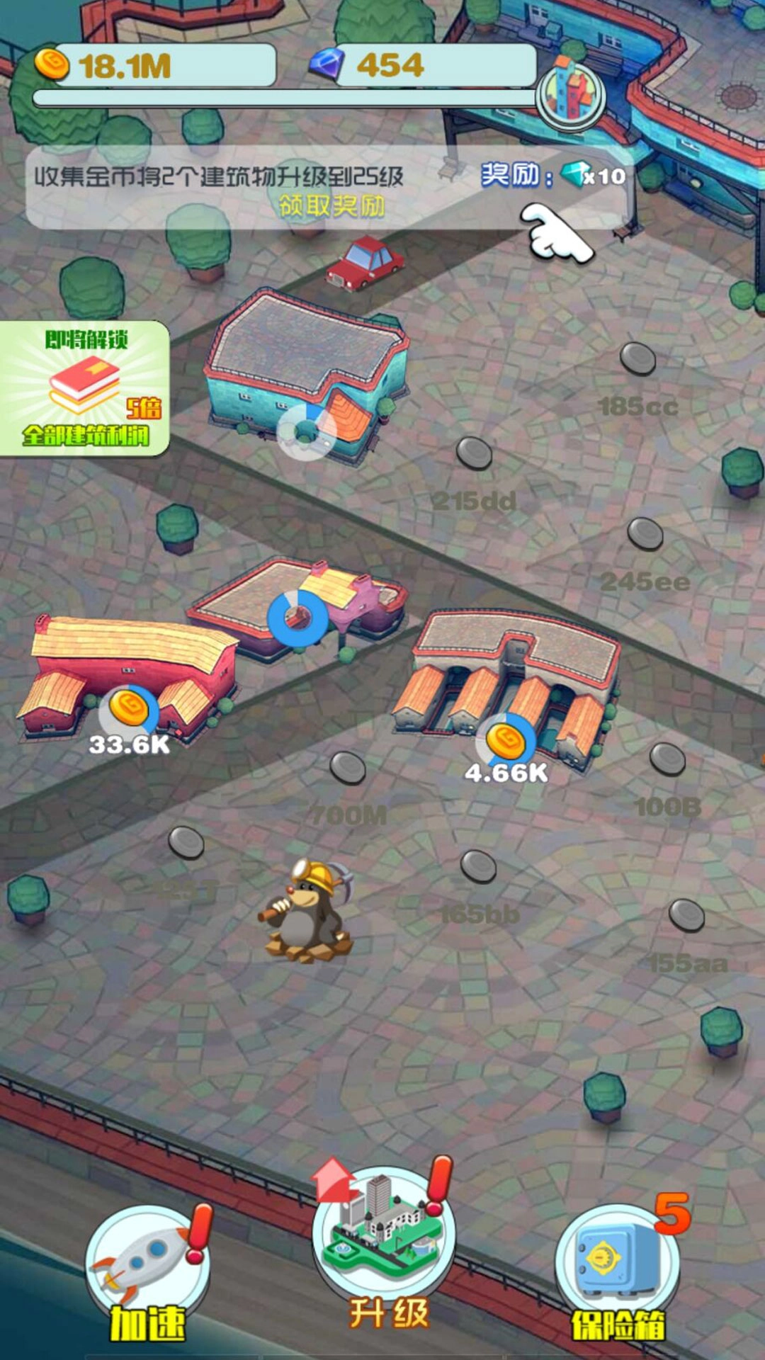 2、按时开启保险库,不仅能获取额外金币,运气佳时还可解锁特殊建筑,为城市增添独特功能。