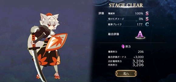 通常情况下,第一关结束时你的界力不会太多,说不定还得买些药,一般只能负担1-2个技能(通常得在关卡里刷到2000界力以上才能买2个)。所以对普通玩家而言,我建议第一关结束时把评价等级控制在2级,这样才能确保抽到之前说的那3个最优技能并买下。要是打boss时miss导致评价掉到1级,可能就没机会刷回2级了。你可以在之前的关卡中把评价刷到3级,再根据情况主动撞一下来控制等级;或者更推荐你在关卡中就把评价稳定在2级,打boss时扔雷避免miss。