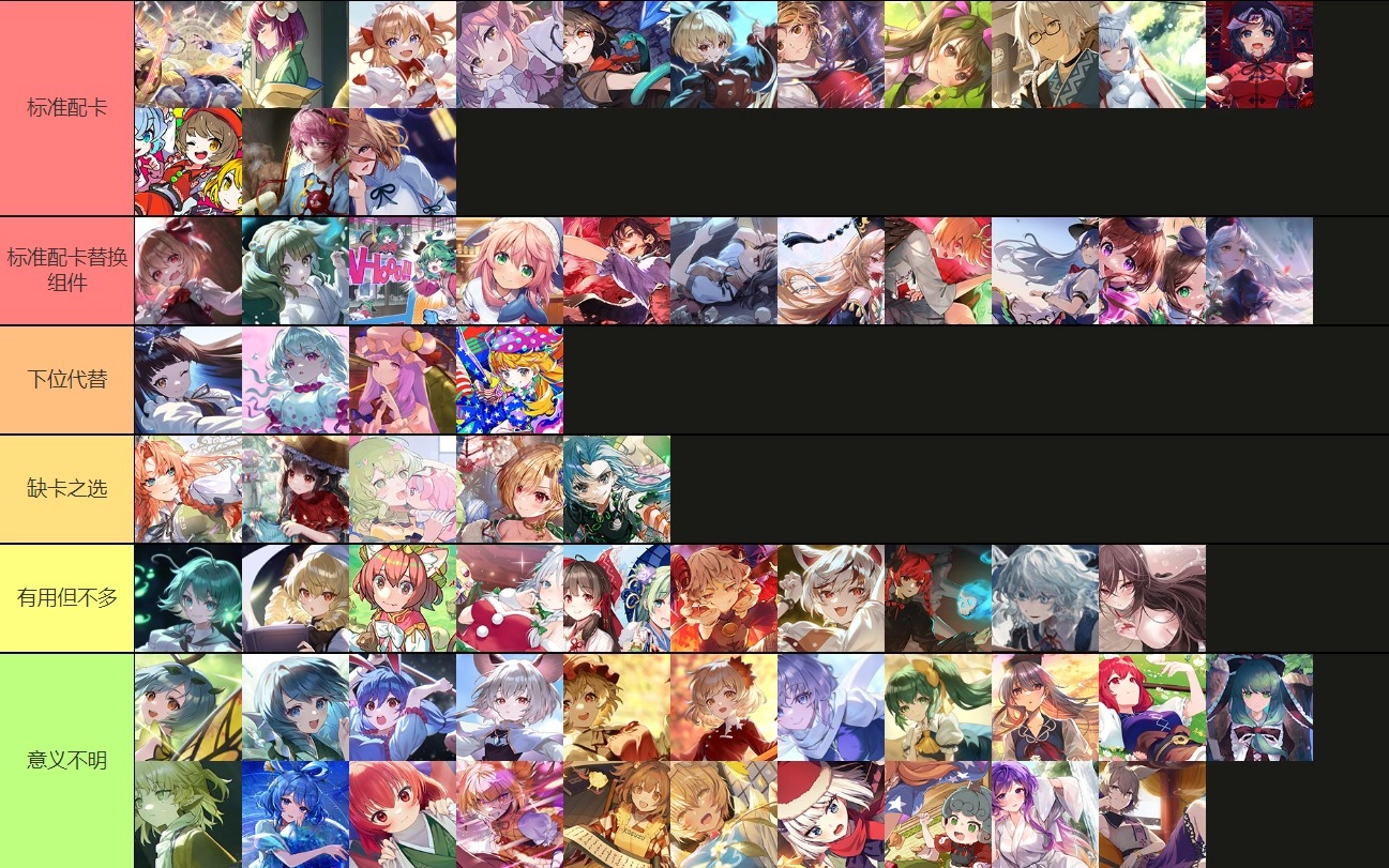此外,记忆卡也没有强度的说法,只能去谈一个泛用性和好用程度,但好用的不一定就是最好的。例如:回盾卡(例如九十九姐妹)是可代替的,但是你不带回盾卡你玩的很不舒服;同样,阿求可以被通行证的觉卡所代替(对于冲击波角色),但是又有多少人有觉卡并且满破了?