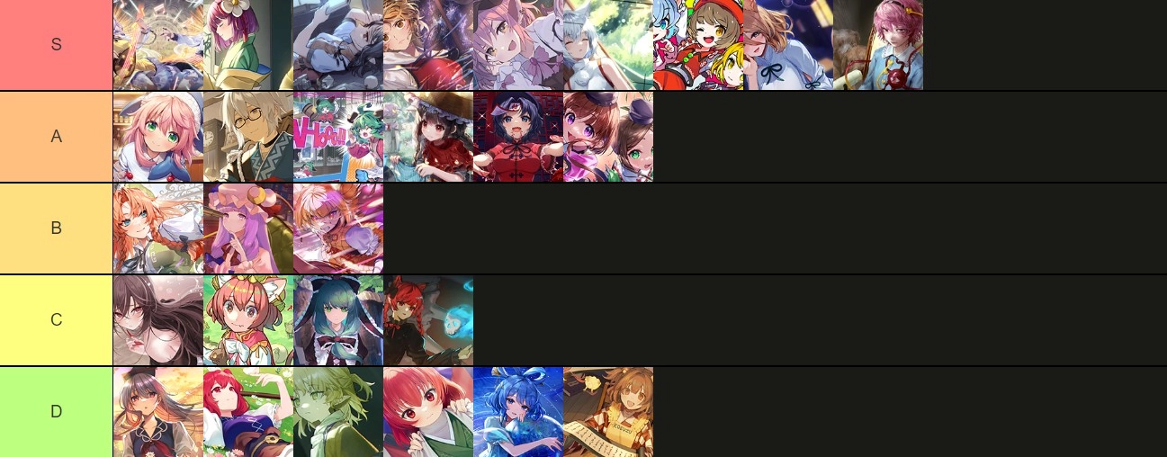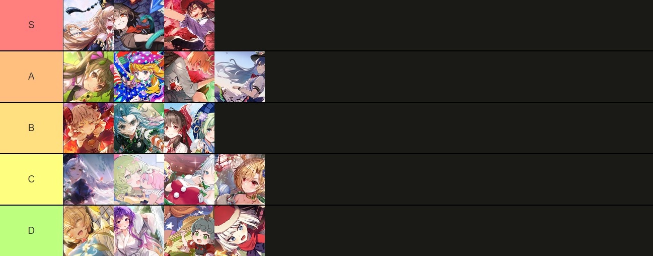 D:灵梦由于开局就送,所以除非你厨灵梦,否则不建议抽灵梦,强度也很一般,但手感不错。