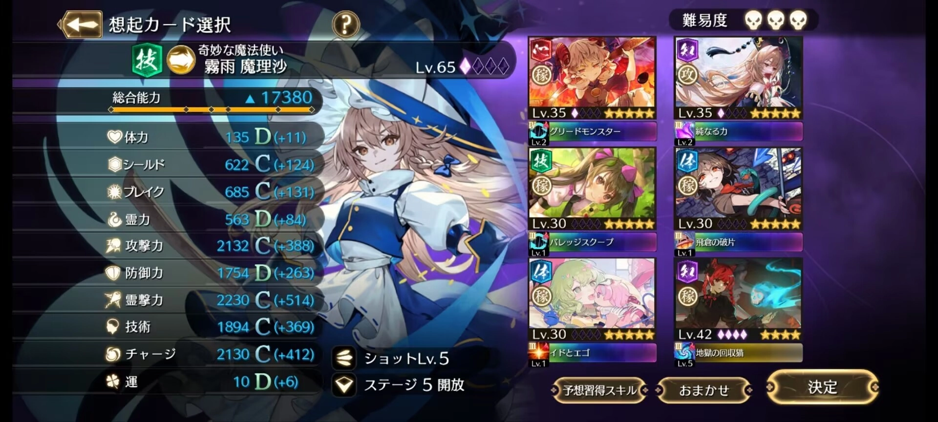 除去以上为了特定技能而选择的回忆卡,如果你还有其他卡位,那么可以放一些增加攻击力、增加灵击对应属性的卡。如果还有位置,你甚至还可以放一些比如增加道具吸取范围的卡,比如这张赤蛮奇。