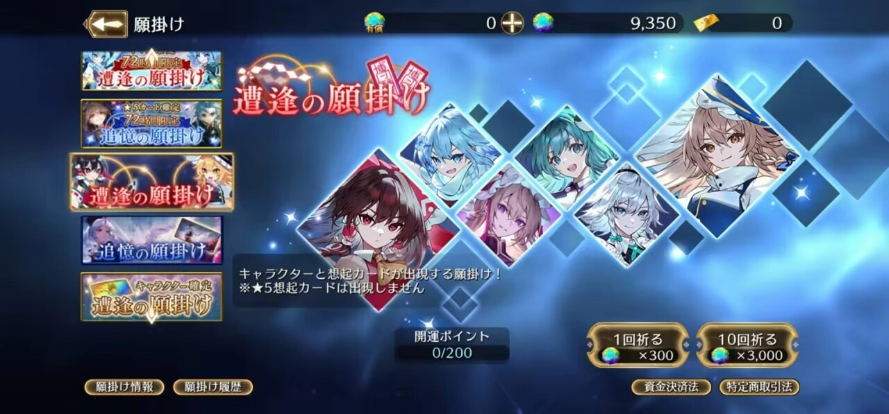 主要目标:至少3个自机(计入灵梦)+1个5星的记忆卡(最后再把必得池子氪了 就可以屯钻了)、