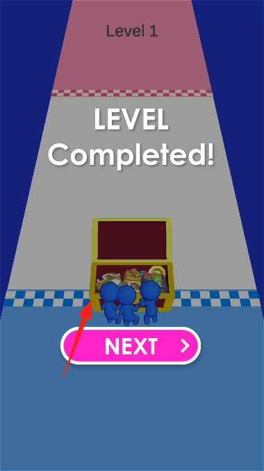 2、推动宝箱到终点红白格线,显示LEVELCompleted!,点击NEXT进入下一关。