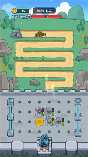 2、进入关卡后,可将初始齿轮放置在屏幕中间位置,齿轮每转动一圈,魔物便会发起一次攻击。