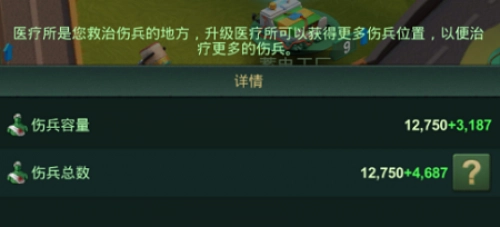总伤兵容量表示医疗所可以容纳的伤兵总数,建造或升级医疗所可以有效提升总伤兵容量。
